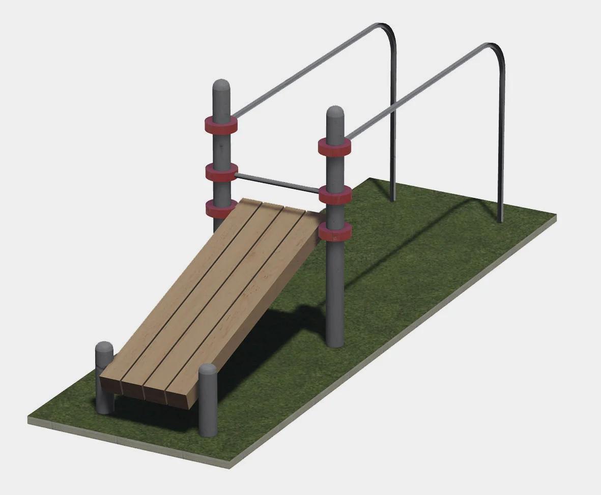 Составляющими данного комплекса являются опорные столбы высотой 1500 мм - 2 шт и 500 мм – 2 шт.