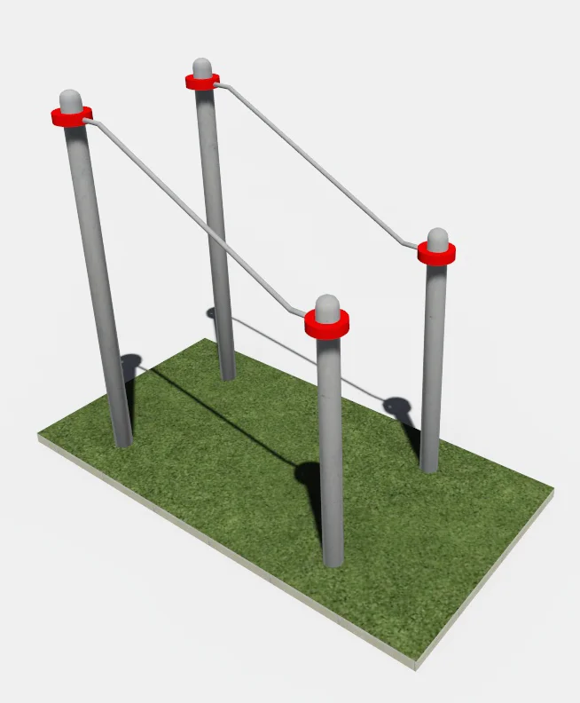 Брусья состоят из 2-х жердей и 4-х вертикальных столбов, которые расположены параллельно друг другу.