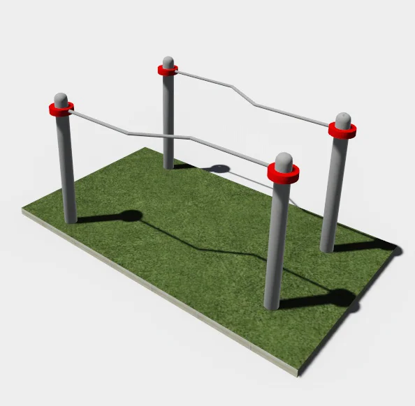 Брусья состоят из 4-х вертикальных столбов и 2-х жердей. Высота столбов 1100 мм и 1400мм. Длина каждой жерди 1790 мм.