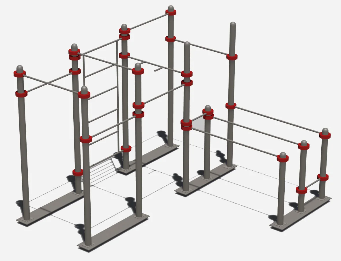 Перекладины брусьев в количестве 3 шт. фиксируются на высоте 1300 мм от поверхности основания.